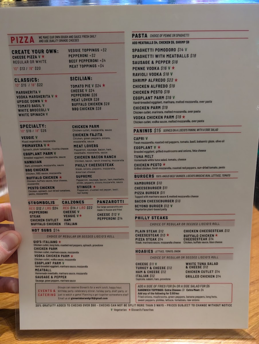The moment you crack open the menu, prepare for a culinary journey that tantalizes the taste buds. Start with one of their piping hot subs, such as the Gio's Italiano or the legendary Chicken Parmesan Hot Sub, each oozing with melted mozzarella and flavorful sauces, artfully layered between fresh bread. For those craving an iconic taste of Philly, don’t miss the cheesesteak, which has been praised for its mouthwatering flavors, earning rave reviews from visitors like Michael Tuffour. The cheesesteak here promises to be a delightful encounter with textures and tastes that will leave you wanting more.