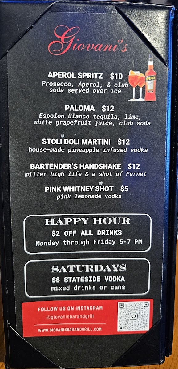 Engulfed in a cozy atmosphere enriched with authentic décor and buzzing with the energy of sports fans, Giovani's Bar & Grill shapes an inviting space for casual dinners, late-night snacks, or lively gatherings with friends. As Roxanne Liberti shares, the late-night menu keeps things interesting, with pizza by the slice and delicious wings available well into the night, embodying the true spirit of a bar and grill experience.